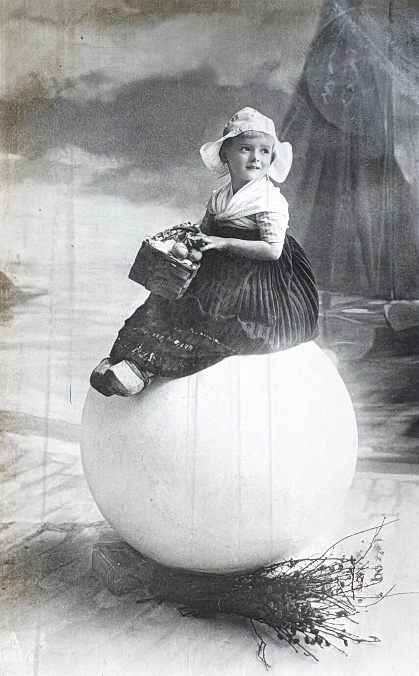 Postcard アンティークポストカード イースター 卵と女の子 写真 フランス