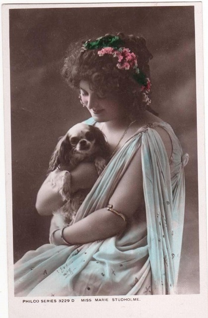 イギリス女優 Marie Studholme スパニエル犬(キャバリア) [w702]