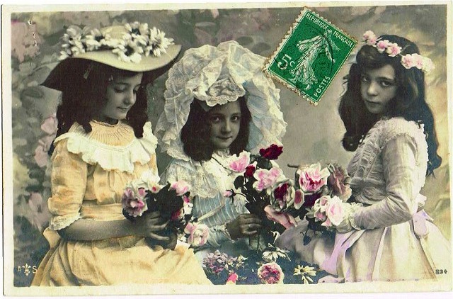 フランス1908年消印。手彩色写真ポストカード Real Photo