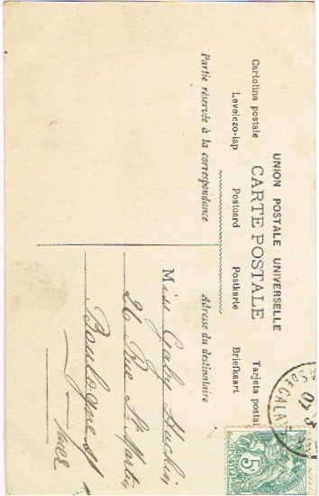 フランス1907年消印。手彩色写真ポストカード Real Photo