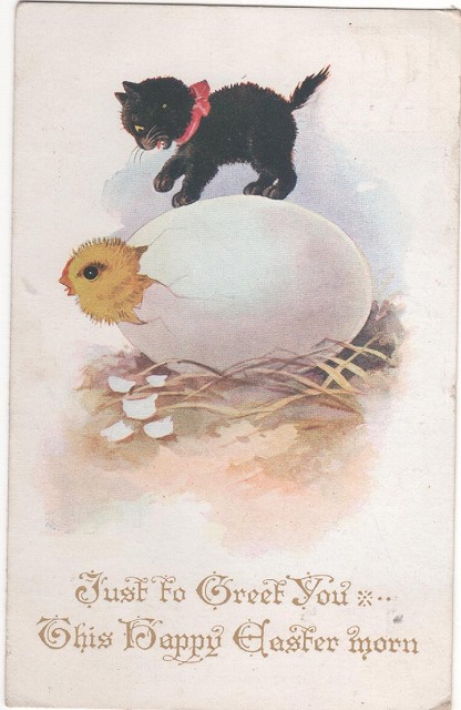 イギリスでは黒猫が幸運を招く猫として信じられており、特に1920年代のポストカードには、グッドラックの言葉とともに黒猫が描かれています。