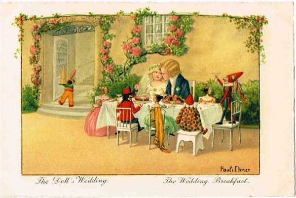 エブナーの人気シリーズの「The Doll's Wedding」(お人形さんの結婚式)です。お人形さんに祝福されて、可愛い二人が結婚します。
