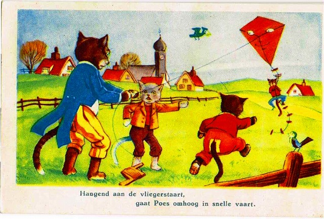 凧揚げをする猫